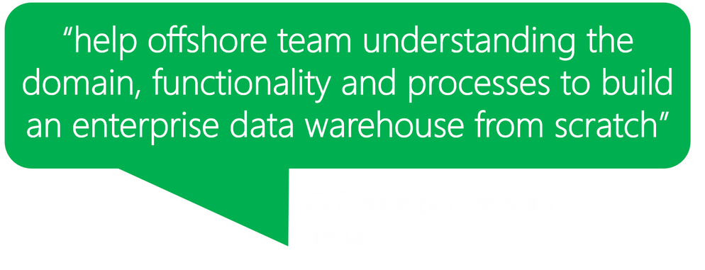 [POB Enterprises...] "helped the offshore team understand the domain, functionality and processes to build an enterprise data warehouse from scratch. Their ability to visualise the big picture is truly commendable "